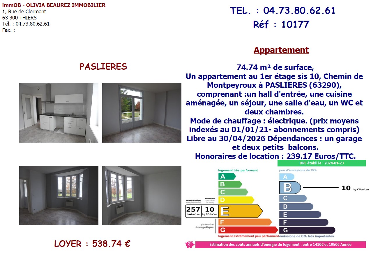 🏢 PASLIERES – chemin de Montpeyroux – APPARTEMENT – 74 m² – 538,74 €